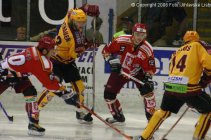 V poslední dvacetiminutovce tlak hostí pokračoval. Nejprve Roubík trefil Sáblíkovu masku a o chvíli později dokonce zvonila po Koudelkově střele tyč! Dukla se sice snažila odpovědět protiútokem, ovšem její ambice ihned utnul Patrik Fořt, který v sólu poslal Sáblíka na led a sám pak střílel přesně pod víko - 1:5. To už někteří jihlavští „fanoušci“ nevydrželi a stadionem se začalo ozvat hromové: „Chalupa ven.“ Tento nepěkný pokřik neustal ani když Dukla snížila skóre. Jan Dušátko ideálně zpracoval nahrávku od Poláka a své sólo zakončil přesným zasunutím puku mezi Hylákovy betony - 2:5. Domácí ovšem po tomto gólu polevili, což byla živná půda pro pokusy hostí, což dokládá pokus Jaroslava Roubíka od modré, kterým vyprášil Sáblíkovy betony. Jihlava se pokusila odpovědět sledem akcí, ovšem ani Kuchyňa, Čachotský ani Říha svými dorážkami Hyláka nepřekonali. Zato Hradec byl ve svých pokusech úspěšnější. Střela Suchého z úhlu sice ještě narazila na Sáblíkův beton, ovšem o pár vteřin později zvedali hosté ruce nad hlavu pošesté. Domácí brankář neudržel ve své moci Dominovu střelu. Ke ztracenému puku okamžitě přispěchal Roman Vondráček který dvěma dorážkami přeci jen překonal domácího brankáře - 2:6. I poslední minuty patřily hostům. Potůček hezky pálil z otočky a když Patrik Fořt zazdil střelou do lapačky únik tři na jednoho, byl gólový účet zápasu podtržen.