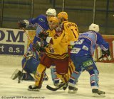 Za prvních 40 minut padlo celkem pět gólů. Nikdo na zimním stadionu tedy asi nečekal, že závěrečná dvacetiminutovka přinese takové brankové hody.Za dvacet minut padlo celkem sedm gólů! V úvodu třetiny mohl Jihlavu poslal do dvougólového úniku Ladislav Rytnauer, na kterého zívala prázdná branka, ovšem kotouč měl svou hlavu. Chomutovští šli tvrdě za vyrovnáním jak třeba Černý, který využil skrumáže před Ježovou brankou a pálil skrz chumel těl, ale Jež střelu betonem na poslední chvíli vykopl. O pár chvil později však jihlavský brankář udělal první chybu večera. Po vyražení Malátovy střely zůstal ležet na zemi a Martin Nosek měl již snadnou práci s jeho přehozením - 3:3. Hosté, povzbuzení podařeným vyrovnáním se i nadále pouštěli do útoku, ale největší šanci Polodny vychytal Jež lapačkou. Na straně domácích se o gól snažil nejprve Řípa ze svého tradičního úniku, ovšem Podolka byl pozorný. Pak si na sniperský komando zahrála dvojic Morava – Kuchyňa. Oba vyslali na chomutovskou branku po dvou jedovatých střelách, při kterých užuž diváci zvedali ruce nad hlavu. Udeřilo vak na druhé straně v ten nejneočekávanější moment. Dukla hrála přesilovku a zdálo se, že svůj tlak vystupňuje. Naopak dvakrát inkasovala. Nejprve se do sóla utrhli Ladislav Boušek s Radkem Šípem, přičemž druhý jmenovaný propálil Ježe ukázkovým one-timerem - 3:4. Ve stejné přesilovce udeřilo podruhé a byla to zároveň druhá chyba Jež, která skončila gólem. Jihlavský brankář nejevil aktivitu vyjet proti puku, ke kterém se blížil Ladislav Boušek. Ten se kusu gumy ujal a potrestal Ježe za jeho zaváhání - 3:5. Domácí tedy dostali ledovou sprchu, ze které se však podivuhodně rychle oklepali. V palebných pozicích se postupně bezúspěšně vystřídali Morava se střelou od modré, Duben, který pálil také od modré, ale počkal si se střelou, Dušátko, který puk dorážel dokonce třikrát! Chomutov odpověděl jen střelou Charouska, proti které Jež sklapl betony. Jihlava stále bojovala, například tento večer hyperaktivní Rytnauer dorážel v závaru, ovšem bezúspěšně. Kuchyňa pálil dvakrát od modré, ovšem poprvé trefil tyčku a pak i beton. Tlak domácích nemohli hosté dlouho vydržet. Když na modré napřáhl Duben a jeho projektil minul chomutovskou branku, zdálo se vše ztraceno, ovšem když se puk od mantinelu odrazil k u zadní tyčky stojícímu Jonáši Fiedlerovi, bylo jasné, že urostlý forvard zavěsí - 4:5. Chomutovští vycítili ohrožení a snažili se navýšit skóre. Šíp ovšem neuspěl s ranou z voleje na zadní tyč. Tentokrát si Jež počínal na jedničku s hvězdičkou. Jihlava šla za vyrovnáním a tento cíl nakonec splnila. Když Jozef Lukáč napřáhl na modré a jeho projektil se zastavil až v síti, tak jihlavský stadion explodoval radostí - 5:5. Doslova ledovou sprchu domácím ochozům přichystal jen 48/ vteřin po vyrovnání Kamil Černý, který Ježe propálil z mezikruží - 5:6. Začalo to vypadat, že Chomutov se dostal definitivně na koně a vedení už nepustí. To by ovšem hokej nesměl být hrou, kde není nikdy nic jistého. Když jsem napsal, že při pátém gólu jihlavský stadion explodoval radostí, pak nevím, jaký termín použít pro radost z gólu na 6:6, pod který se znovu podepsal Jozef Lukáč. Třetina se tedy pomalu chýlila ke konci a zdálo se, že se utkání dotáhne v klidu až do prodloužení. Ovšem 13 vteřin před třetí sirénou byl za údajné napadení vyloučen Petr Kaňkovský. Všem domácím bylo jasné=, že prodloužení bez tohoto forvarda bude velmi těžké.