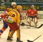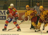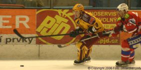 Přestože od počátku utkání tahali za delší konec pomyslného hokejového lana domácí, byli to hosté z Třebíče, kterým se povedlo vsítit první branku, jež se ovšem stala i jejich poslední. Po střele veterána Bedřicha Sčerbana si jinak bezchybný Milan Řehoř nebyl jist, kam vyrazil kotouč, ten nejrychleji zavětřil Milan Gulaš a poslal jej za brankovou čáru Jihlavy, 0:1. Převaha domácích ale pokračovala a tak se po neproměněných šancích Tomáše Čachotského a Jonáše Fiedlera prosadil také v přesilové hře špílmachr Petr Kaňkovský, jemuž byla připsána i další vlastní branka třebíčského Hrbáčka, která na sebe nenechala dlouho čekat a rázem bylo vše naopak, 2:1. Netrvalo to dlouho a siláckým způsobem docílil třetí branky Dukly Jiří Řípa a ta tak odcházela do následujícího dějství s náskokem dvou branek – 3:1.To jí však dnes evidentně bylo málo a tak se hned po čtrnácti vteřinách druhé části hry prosadil navrátilec do sestavy domácích, kapitán Oldřich Bakus, 4:1. Na straně hostí si po odrazu od zadního mantinelu vypracoval slušnou příležitost Buček, ale Milan Řehoř už neměl dnes náladu pouštět další kotouče do své sítě. Přišly tedy chvíle Tomáše Čachotského! Jihlavský štírek si nejprve odbyl ve vlastním oslabení zkoušku z kličkované a z otočky propálil Luňáka, který již okupoval třebíčské brankoviště namísto Valenta, 5:1. Dovednosti mladého jihlavského hráče asi zanechaly stopy na duši zadáka hostí Vomely, který si před dalším sólem jihlavského hráče doslova a dopísmene sedl na zadek a o mnoho lépe nedopadl ani náhradní třebíčský gólman, když i on byl na kličkovanou Tomáše Čachotského krátký, 6:1.
