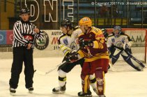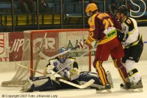1992/93 - To je sezóna, ve které diváci na Horáckém zimním stadionu viděli naposledy 10 gólů v síti soupeře! Toto čekání uťali hráči Dukly až dnes. Tenkrát to odnesly 10:0 Pardubice, v sobotu to byla Kadaň. Utkání mělo svižný začátek a jako první musel své brankářské umění předvést domácí Řehoř, který vyrazil Derflerovu střelu. Z útoku zahrozil Tomáš Čachotský, který tak načal dlouhé obléhání Stejskalovy klece. Dukla se tlačila do útoku, ale kadaňský gólman postupně zlikvidoval Lukáčovu dělovku od modré, Bakusovu střelu z mezikruží přilepil na svůj plastrón, Kaňkovského střelu přes obránce vykopl špičkou betonu, proti Míkově střele na zadní tyč se hbitě přesunul a lapačkou zkrotil Moravův pokus od modré. Proti Fiedlerově povedené střele vůbec zasahovat nemusel, neboť jen těsně minula spojnici tyček. Když se na druhé straně neujal ani pokus Petra Chotaše od modré, bylo jasné, že první třetina skončí bezgólovým stavem.