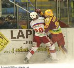 Třetí část zahájil aktivněji Beroun, když se Hobl rozhodl obkroužit Řehořovu klec, ale domácí gólman byl u tyčky pozorný. Dukla se pak ale začala tlačit více do útoku. Rytnauer nejprve tečoval vedle, pak Řípa v sólu, ač atakován, pálil do Handlova plastrónu. Neuspěl ani Bakus, který trefil pouze gólmanovu hruď. Beroun se však utrhl a v útoku dva na jednoho nejprve Řehoř skvěle holí vykryl Semorádovu střelu, proti dorážce z hole Jiřího Jelínka již byl bezmocný - 1:2. Beroun se snažil, ale Řehoř se nenechal překvapit. Hoblovu střelu například zlikvidoval pohotovým semaforem. Ve 49. minutě se Oldřich Bakus prosadil nenápadnou střelou, či spíše přistrčením puku, které však mířilo k tyči - 2:2. Dukla se zřejmě nakrátko nechala ukolébat, čehož se snažil využít Novotný, ale jeho střelu skryl Řehoř v lapačce. Dukla se však rychle otřepala, když Petr Kaňkovský poslal puk z voleje nad Handlovo rameno - 3:2. Domácí však vedení dlouho neudrželi, když prudká střela Adama Lukačoviče překonala jen těsně brankovou čáru - 3:3. Bylo tedy jasné, že s půjde do prodloužení.