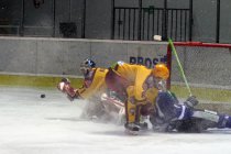 Úvod zápasu patřil Kometě, která po pár náznacích šancí mohla jít do vedení, ale Hodkova rána se brance Dukly vyhnula. Neujala se ani úvodní přesilovka. Série „kolotočů“ k ničemu nevedla. Vzápětí se mohla Kometa dočkat přesilovkového reparátu, když byl potrestán za zdržování jihlavský brankář Řehoř, avšak uběhlo jen pár vteřinek početní výhody a hlavní sudí Smeták „vymetl zpod koberce“ úvodní kompenzaci, kterými pak hýřil celé utkání a poslal i Brňany do čtyř! Jak se má využívat přesilovka, to předvedla až Dukla. Nevymýšlel zrádné zdlouhavé teorie a vrhla se na osvědčenou stručnou praxi. Bakus a Rytnauer si rozebrali bránící hráče, Čachotský si nabruslil před osamoceného Maláče, položili ho na led a pak podél něj zavěsil – 0:1. Odpověď přišla vzápětí. Tentokrát byla početní výhoda na straně Komety. David se nechal inspirovat jednoduchostí a střelou od modré srovnal – 1:1. Jenže, jak se do lesa volá, tak se z něj ozývá a ozvěna to tedy byla pořádná. Neuběhla ani minuta a Dukla znovu vedla! Bakus využil hrubé chyby domácí obrany a svůj brejk dotáhl do úspěšného konce – 1:2. A Dukla se tlačila stále dopředu. Zvláště její první útočná řada několikrát nebezpečně zahrozila, ale Maláč, který se po delší době mohl znovu ukázat před tribunami Ronda se rozchytil do skvělé formy, za což sklízel zasloužený aplaus. Je na místě otázka, zda se vybavili některým divákům slova známé písničky, ve které se zpívá, abychom neopouštěli své staré známé pro nové…….. Před pár týdny, když dostal šanci nový brankář Petrík, Maláče div nezatratili, ale ten se jim dnes svým výkonem náležitě připomenul!! Tlak Dukly však utnulo další vyloučení na její straně a nabídnutou šanci tak mohla využít Kometa k dalšímu srovnání stavu, čímž rozhodně nepohrdla. Černý vyslal na Řehoře nepříliš povedenou střelu, ale puk z jeho hokejky přece jen doskákal za brankovou čáru – 2:2. Za tohoto skóre skončila úvodní třetina, jenže nemuselo tomu tak být. Dukla byla blízko k tomu, aby znovu strhla vedení na svoji stranu, jenže Maláč nepovolil!
