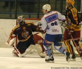 Do druhé třetiny vkročila s větším nasazením Dukla, když ze slibných pozic pálí Kaňkovský a také Lukáč. Odpovědí byla ve třetí minutě 2.třetiny tvrdá střela od modré, kterou zalehnutím blokuje Morava, další projektil od modré s přehledem jihlavský brankář likviduje, ač byl cloněný a na střelu neviděl. Po nahození Dobrovolného doráží puk Kaňkovský, ale puk se mu nedaří zvednout, gólman Hořčička kryje. Ve 25.minutě sudí opět vylučuje, tentokrát Dobrovolného za hákování ujíždějícího Jeslínka. V následné přesilovce hostů se ale Dukla dobře brání, jen s výjimkou nikým neatakovaného Tausche, který s pukem nabruslil až před samotného brankáře, ten s potížemi kryje. V závěru oslabení Dukla využívá zaváhání chomutovských k úniku, v něm ale Lazorišák zaváhal, brankář hostů svůj tým podržel. V dalších minutách je Dukla aktivnějším týmem, svou hrou nutí Chomutov k nedovoleným zákrokům, na trestnou lavici proto odchází Révai za nedovolené bránění. Ovšem po zaváhání Kaňkovského na modré se puku jímá chomutovský forvard, který z breakové situce těží pouze trest pro jihlavského brankáře, který nájezd zastavuje, dle verdiktu sudího, podražením útočníka. K vidění je tedy opět hokej se čtyřmi hráči v poli na obou stranách. Po vypršení trestu Dukly se ve vlastním oslabení dostává do popředí Jeslínek, Morava jej zastavuje za cenu faulu. V následujících vteřinách Chomutov uzavřel Duklu v obranném pásmu ale ta se nakonec osvobozuje. Avšak těsně po vypršení trestu Jíra přihrávkou zpoza branky nachází Mikšovice, ten neváhá a pod betony brankáře posílá puk za brankovou čáru a otevírá skóre dnešního zápasu, 0:1 Říká se že s jídlem roste chut´, což dobře vystihuje aktivitu Chomutova po úvodní brance. Jejich elán nebrzdí ani vyloučený Hašek, svou chybou na modré Kaňkovský pouští do nájezdu severočechy, ale naštěstí pro domácí se vrací a kombinaci hostů dobře vystihuje. Ve zbytku přesilové hry již Dukla recept na obranu hostů nenalezla a tak tedy ve zbývající chvilce druhého dějství nebyl k vidění příliš atraktivní hokej, spíše nečistá hra na obou stranách.