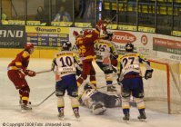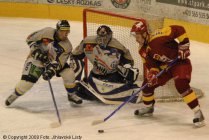 Dukla se poprvé, a naposled, radovala na začátku druhé minuty. Nahození Staňka Lev jen vyrazil před sebe, kde se nejlépe zorientoval Martin Krupka a zasunul kotouč do brány - 1:0. Nepsané hokejové pravidlo hovoří o tom, že brzký gól spíše uškodí, než pomůže. Kord proti papírově slabšímu mužstvu. Něco na tom asi bude… Druhou zajímavou akci první třetiny předvedl Stejskal, když neskutečnou pumelicí vyprášil Řehořovu vyrážečku.