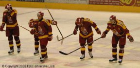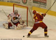 Až třetí možnost dvojnásobné početní výhody dokázala Dukla gólově zužitkovat. Zkušený Říha moc dobře viděl najíždějícího Petra Štracha, který poslal kotouč z „jedničky“ za bezmocného Danečka - 4:1.
