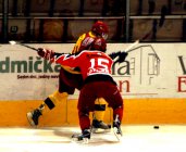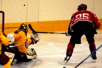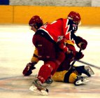 Do zápasu vstupoval jako favorit hostující tým Znojma, což potvrzoval už od začátku velmi agilním Jarůškem. Ten svůj samostatný únik ve 3. minutě však zakončil pouze bekhendovou střelou nad branku. V 7. minutě opět Jarůšek přebruslil domácího obránce a ač byl tísněn dokázal zakončit, puk však skončil pouze v ochranné síti za brankou. Že hokej hrát umí, chtěli ukázat i domácí, jenže šance Kuřítka, který se ocitl sám před Kacetlem zůstala nevyužita. Pozorný Kacetl v závěru prvního dějství včas přikryl kotouč před dotírajícím Vondráčkem s Pěškou.