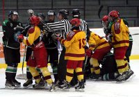 Třetí třetinu začínali červenožlutí v oslabení, a jen co jedno skončilo, začalo druhé. Hosté však nabídnutých šancí nevyužili a slova se opět ujali domácí. V čase 47:59 se puku chopil David Kuchyňa, který dodal zápasu poslední gólovou tečku - 5:1.