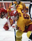 Hosté však přeci jen vyrovnat dokázali, Jaroslav Roubík vykroužil s pukem zpoza branky a ačkoli měl na zádech pověšeného bránícího Ficence, dokázal puk poslat přesně k tyči, 3:3. Odpovědět se pokoušel Bakus, který se rychlým výpadem zpoza branky pokusil nachytat Luňáka. Hostující brankář si dokázal poradit i s dorážkou Čachotského, proti které se stačil včas přemístit.
