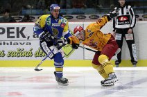 Ve druhém dějství se hrál od prvních minut fantastický hokej. Akce střídala akci, hra měla velmi rychlý spád. Zajímavostí byl velmi malý počet přerušení, díky čemuž byla hra skutečně pohledná. Ve 26. minutě mohla jít Dukla do vedení. Do přečíslení 2 na 1 zběsile pelášili Peter Sojčík společně s Alešem Padělkem. Druhý jmenovaný volil individuální zakončení. Vypálil tvrdou a dobře mířenou střelu, která ve finální fázi orazítkovala břevno hostující svatyně. Pomalu, ale jistě se začínalo na ledě pouze žlutit. Domácí byli stále lepší a lepší. Zejména útočná trojice Protasenja, Krupka, Zeman se prezentovala velmi kvalitním pohybem. Ústečtí hokejisté se skutečně v této fázi hry nechovali jako šelmy, které mají ve znaku a názvu. Ve 38. minutě si skvěle před branku vybruslil domácí kapitán Oldřich Bakus. Jeho pokus ovšem pozorný Francouz bez problémů zlikvidoval. I přes velkou snahu a převahu domácích hráčů se ve druhé dvacetiminutovce skóre neměnilo. Pro jihlavské hokejisty jistě bylo více, než potěšující, že dokázala s ústeckými držet krok, ba i být lepším týmem.
