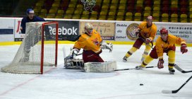 Na první gól nemuseli fanoušci v ochozech Horáckého zimního stadionu čekat dlouho. Už v čase 02:49 rozvlnil síť za Ilašenkovými zády obránce Václav Jaroš. O dvě minuty později se jihlavští mladíci radovali z gólu znovu. To se po přihrávce Marka Prokše trefil Ondřej Pěška. "Dneska jsme měli velice dobrý vstup do utkání. Vezli jsme se po včerejším vítězství na Slavii na vítězné vlně. První třetinu jsme odehráli výborně," hodnotí první dvacetiminutovku trenér jihlavských juniorů Petr Svoboda. Sa dalším průběhem utkání už tak spokojený nebyl.