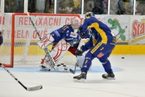 V dalších minutách se hra nesla v duchu dobývání obranných pásem, zvláště když domácí museli hrát dvakrát v oslabení, ale hosté v početní výhodě i přes chvílemi silný tlak skórovat nedokázali. Poslední pětiminutovka však patřila domácím, čemuž napomohlo i Krupkovo vyloučení. Dvakrát se v početní výhodě zastřeloval Velecký, ten se však zásahu dočkal až po skončení výhody. V úvodu poslední minuty úvodní třetiny Halmoši pouze vyrazil střelu domácích a Velecký na brankovišti otevřel skóre.
