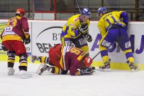 Závěr první dvacetiminutovky však patřil opět domácím. Padělek zavezl kotouč do útočného pásma, obešel obránce hostí a naservíroval Jeslínkovi třetí gól, jak na zlatém podnose. Domácí rychlonožka však hatrick odmítl a puk zamířil pouze do přemisťujícího se Sedláčka. Následně ukázal divákům své šikovné ruce Čachotský, který obešel obránce Písku, na Sedláčka však už nevyzrál. Hostující brankář totiž zůstal stát a pokus o blafák skvěle vybruslil.