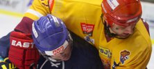 Po desetidenní herní pauze vlétli Ústečtí Lvi do úvodního semifinálového klání aktivně. Hned od úvodu se v čele s novou posilou Václavem Varaďou drali do ofenzivy. Brzkým ústeckým útokům však jihlavská defenziva odolala a po třech minutách hry se ke slovu dostali i hosté. Především kanonýr Hodek se zkušeným Filipem činili pro domácího brankáře Orcta nebezpečí. A netrvalo dlouho a Dukla se dostala do vedení. V šesté minutě převzal na modré kotouč ALEŠ PADĚLEK a brilantní střelou příklepem nedal Orctovi šanci. Jihlavští fanoušci, kteří přijeli povzbudit Duklu na sever Čech, byli v tu dobu v extázi. Vzápětí na jihlavského gólmana Novotného dorážel střelec Roubík, ale s vyrovnáním skóre neuspěl. Jihlava po brzké brance byla při chuti a v osmé minutě ostře pálil Filip. V tu dobu měla ústecká obrana vážné problémy. Aktivní hráči z Vysočiny pálili na Orcta jednu ránu za druhou. Především ta Dominova mířící pod břevno byla nebezpečná. Ústecká noční můra zdaleka nekončila. V 11. minutě totiž zvýšil skóre po další exkluzivní akci ADAM ZEMAN. Ten dostal za modrou čáru puk od Daniela Hodka a při situaci dva na dva zavěsil bekhendem pod břevno. O minutu později se na Orcta řítil jihlavský Bezděk. A mohl by pokračovat v nájezdu, kdyby při svém útoku nefauloval. Jeho prohřešek okamžitě potrestal MARTIN ŠAGÁT, který dorazil odražený kotouč za Novotného záda. Ve 13. minutě ústecký Hanzl narazil do gólmana Novotného a vyfasoval čtyřminutový trest. Jenže do role mstitele se posadil Grundmanis, který Hanzla ostře napadl. Bohužel na ledě nebyl žádný z ústeckých bitkařů, aby jihlavského obránce zklidnil. Vzápětí Lvi dopravili puk za Novotného, jenže sudí branku Slovanu neuznali. V závěru první třetiny domácí přitvrdili a nutili Duklu k faulům. Jenže sami přesilovky nedokázali využít a naopak navrátivší TOMÁŠ ČACHOTSKÝ v 19. minutě unikal v brejku. Při svém tažení na Orcta byl zahákován a rozhodčí nařídili trestné střílení. To jihlavský kanonýr bez potíží proměnil. Vymíchal Orcta a bekhendovým blafákem překonal ústeckého brankáře. Tím uzavřel velmi vyhrocenou a dramatickou první třetinu.
