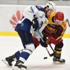 VÍTĚZNÝ GÓL. Marek Melenovský, Richard Diviš a Merek Prokš oslavují třetí gól Dukly Jihlava v zápase na Kladně. Trefa zkušeného borce byla vítěznou. Foto: Karel Švec (ČSLH)