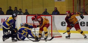 Jihlava od poloviny jedenácté minuty zatlačila svého soka, jenže ani jednu ze svých příležitostí nevyužila. A že jich bylo hodně! Malec se řítil z levé strany na Volkeho, mezírku mezi jeho betony ale nenašel. Čápova dělovka od modré znamenala velký závar před brankou Ústí, kde gólman hostů zachránil svůj tým proti dorážce Diviše. Zanedlouho stačilo Divišovi překonat ležícího Volkeho, jenže domácí desítka puk nad gólmana nezvedla. Pětice Severočechů s gólmanem se statečně bránila i proti další dorážce Semana, následná Zadražilova teč Šimkovy střely skončila v lapačce muže s maskou. Tlak Dukly paradoxně uťala její přesilovka, která se červenožlutým vůbec nepovedla. V poslední vteřině první části mohl zvýšit vedení hostů Jan Kloz, který nabral rychlost, ale u pravé tyče Ritticha nepřekonal.