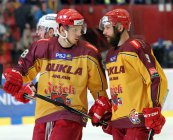 Hodně opatrné pětiminutové prodloužení rozhodnutí nepřineslo, na řadu tak přišly samostatné nájezdy. Tomáš Harkabus ani Nathan Robinson v první sérii neuspěli. Ve druhé přiblížil hosty k výhře bekhendovou kličkou Miloslav Čermák. Dukla sice zásluhou Josefa Skořepy, který se trefil mezi betony, odvrátila mečbol, ovšem vzápětí rozhodl David Šafránek. Rozhýbal gólmana, uspěl s forhendovou kličkou a podél roztahujícího Škarka rozhodl - 4:5 po samostatných nájezdech (1:2).