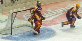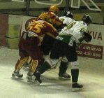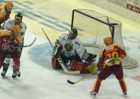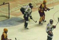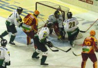 Po úterní vysoké prohře s pražskou Spartou dnes nastoupila Dukla proti sousedovi z tabulky, Karlovým Varům. Fanoušci, kteří propásli úvod zápasu zřejmě litovali, jelikož skóre se měnilo od prvních vteřin. Vše načal v 50. sekundě Petr Vala. V přesilové hře si vyjel od mantinelu a tvrdou střelou překonal brankaře Šmída, 1:0. Odpověď hostů na sebe však nenechala dlouho čekat. Při vyloučení Poláka tečoval střelu od modré Procházka a bylo vyrovnáno, 1:1. Další akcí strhl vedení na stranu západočechů Lipianský, který využil zmatků v obraně Jihlavy, 1:2. V 8. minutě se nechal vyloučit Krátoška a domácí fandové očekávali vyrovnáni. Opak byl však pravdou. Po levé straně prchl obráncům Dukly Kumstát a poslal puk přesně nad Hronkův beton, 1:3. Těsně před první sirénou byl vyloučen Varský Kraus, a tak Dukla začala v početní převaze druhou třetinu.