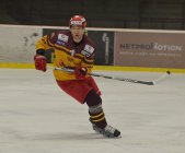 Jestliže chtěla Dukla najít ztracené sebevědomí a cestu ven z výsledkového trápení proti Kadani, tak první třetina jí vůbec nepomohla. Již v polovině třetí minuty zavezl Kohout kotouč po pravé straně do pásma, předal ho před Svobodu na Tomáše Harkabuse a ten souhru loňských hráčů, oblékajících jihlavský dres, zakončil přesně. Nedlouho poté mířil týž hráč po Stloukalově přihrávce zpoza klece jen těsně vedle levé tyče. Jihlava se snažila prát s neúspěchy posledních zápasů, bojovala o puky, ovšem ty domácím hráčům v hlavních momentech odskakovaly od hokejek. Pohlednou kombinaci ukázali Dukláci v přesilovce, kdy si po dvou střelách a přihrávkách sjel z pravé strany do středu pásma Čachotský, ovšem mířil těsně vedle. Stejná situace následovala i při hře pět na pět. Říha našel mezi kruhy Důrase a zkušený útočník si připravil kotouč ke střele, jenže pálil o kousek mimo.