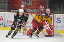 Kadaňská první lajna zlobila i nadále. Harkabus na začátku druhého dějství přihrál na levý kruh pro Stloukala a Svoboda vytáhl výborný zákrok proti puku směřujícímu kousek nad ledem. Na druhé straně prošla Skořepova tečovaná střela od modré i Říhův pokus z téže lajny vedle tří tyčí. Hned z protiakce si mezi kruhy nabruslil Vaněk, vedení hostí však nenavýšil, mířil bekhendem nad. Minutu před polovinou zápasu domácí snížili, a to při svém oslabení. Jergl využil zmatků mezi hostujícím gólmanem a jeho spoluhráči, získal puk, dal jej před branku na Anatolije Protasenju a ten kus černé gumy doslova dotlačil do sítě - 1:2. Domácí rázem ožili, nicméně vyrovnat nedokázali při přesilovce ani v závěru třetiny po šanci Semana. Útočník, který nastupoval také za Kadaň, sebral soupeři na modré puk, sjel si blíže ke kruhům a o kousek netrefil levou šibenici.