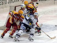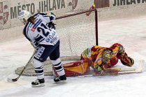 Hned v úvodu třetí třetiny si Západočeši vytvořili velký tlak v pásmu Dukly, což rezultuvalo ve vyloučení Zajace poté, co se snažil zachránit nebezpečnou situaci. Po přesilovkové kombinaci se dostal ke střele Paroulek, ale trefil jen břevno jihlavské klece. Góly si hráči schovali až do doby těsně před odchodem do šaten. V 56. minutě totiž oba jihlavští zadáci propadli v pásmu Plzně, přihrávku Martina Paroulka prodloužil Jaroslav Kudrna na našlápnutého Radka Matějovského, kterému střela sice sklouzla po čepeli, ale i přesto skončil kotouč za zády Hronka, jenž na nepovedený pokus plzeňského forvarda nestačil reagovat, 0:4. Zbytek utkání dohrála domácí Dukla v početní výhodě, neboť Špačkova hůl se ocitla v obličeji aktivního Dolany, kterému způsobila dokonce krvavý šrám a hostující obránce tedy vyfasoval čtyři trestné minuty. O čestný úspěch domácích se 17 vteřin před koncem zápasu postaral Pavel Janků a po přihrávkách Oldřicha Bakuse a Romana Hloucha tím zkazil Tomáši Dubovi čisté konto a upravil už jen kosmeticky na konečných 1:4.