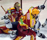 Do utkání s Plzní nevkročili domácí nikterak přesvědčivě a za svůj vlažný úvod pykali hned v 1. minutě. Robert Jindřich totiž našel dlouhým pasem na červené našlápnutého Michala Straku, který najížděl s Františkem Mrázkem na jediného zadáka Dukly a druhý jmenovaný se po přesném pasu svého kolegy z útoky prosadil střelou z první, 0:1. Z větších šancí poté stály za zmínku ta Cartelliho a také příležitost domácího Mareše, zvláště pak ale trestné střílení Plzeňských, které nařídil sudí Mikula po faulu Hloucha na unikajícího Matějovského. K němu se postavil David Moravec, rozhýbal Hronka, provedl blafák do forhendu, ale dostal se do přílišné blízkosti betonu domácího gólmana a nedokázal jej přehodit. Co se však nepovedlo jemu, dokázali o 9 sekund později jeho spoluhráči. Vše začalo prudkou střelou Jaroslava Špačka, kterou Hronek vyrazil za sebe. Tam se ujal kotouče Martin Paroulek, zamotal hlavy jihlavským hráčům, našel mezi kruhy volného Jaroslava Kudrnu a ten hbitou střelou po ledě poslal kotouč za záda dezorientovaného brankaře Dukly, 0:2. Do konce první části hry mohl rozdíl ještě navýšit poté, co mu ukázkově odstavil oba obránce Dukly David Moravec, Martin Straka, ale Hronek si s jeho pokusem tentokrát věděl rady.