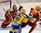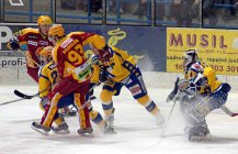 I přes nepříznivý stav nesložili domácí zbraně a do poslední třetiny nastoupili se sympatickým náporem. Několik střídaní motali jihlavští forvardi hlavu soupeřům z Moravy, ale do vyložené šance se ani jeden z nich nepropracoval. Ve 48. minutě ujel ve vlastním oslabení sám na Hronka Petr Leška, ale drobný jihlavský brankář jeho blafák vystihl a puk efektně lapil do své rukavice. O minutu později se domácí konečně dočkali. Igor Murín byl po dorážce z brankoviště překonán. Tentokrát však jihlavským nepřál rozhodčí Rejthar, který přerušil hru dříve, než puk překročil brankovou čáru. Další větší šanci si už ani jeden celek nevypracoval, a tak utkání skončilo zaslouženou výhrou hostů. Hráči domácí Dukly však podali bojovný výkon, za který se stydět rozhodně nemusí.