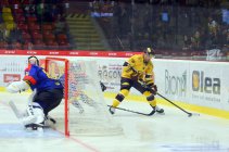 Ze třetí třetiny uběhly pouze necelé tři minuty a radovat se mohli opět hosté. Po nedůrazu na modré čáře a po špatném střídání domácí Dukly projel jako nůž máslem kolem domácích obránců Martin Novák, který obdržel přihrávku od Plášila, poradil s dojíždějícím Pieglem kličkou do protipohybu a střelou pod horní tyč do pravé šibenice zvýšil stav zápasu na 0:2. Bohužel do této třetiny vstoupili domácí velice mizerně. Hosté vycítili obrovskou šanci po vyloučení Pekra za podrážení. Z přesilové hry uběhlo pouze 21 vteřin a hosté se mohli opět radovat. Přesnou křižnou přihrávku naservíroval Plášil na hůl Václavu Karabáčkovi a ten střelou pod lapačku Lundströma rozjásal už potřetí kotel hostů - 0:3. V polovině třetí části spadly koutky domácím ještě více. Niklas Lundström musel bohužel odstoupit ze zápasu kvůli zranění a vystřídat ho musel Ondřej Chaloupek, který si tímto odbyl svůj debut za A-tým. Hosté však v tomto zápase poslední slovo neměli. V 52. minutě vyslal tvrdou střelu na branku Jan Pohl, která se pouze od zadního mantinelu vrátila zpět před branku a Tomáš Jiránek svojí dorážkou snížil na 1:3. Dukla jakoby chytila druhý dech po snižovacím gólu Jiránka. Po gólu se odehrála minuta a 29 vteřin a domácí slavili opět. Pekr předložil skvělou přihrávku do jízdy Adamu Zemanovi, který rozhýbal Kloučka blafákem do forhendu a snížil na 2:3. Dukla bohužel nevyužila ani tlak, který si v poslední minutě po vyloučení Vydareného a odvolání brankáře vytvořila. Zápas nám tedy končí za stavu 2:3.
