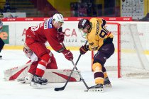 Začátek první třetiny byl z obou stran spíše opatrnější. Postupem času se začalo hrát nahoru dolů a v polovině první části začala mít domácí Dukla více ze hry. Nikdo by se nemohl divit, kdyby domácí šli po první dvacetiminutovce do kabin za příznivějšího stavu. Hráči Dukly měli na holích minimálně 4 gólové šance, ale chybělo přesnější zakončení. Chaloupek se na druhé straně spíše rozchytal než aby se příliš zapotil po pražských pokusech. Dukla si také v první části vyzkoušela dvě početní výhody 5 na 4, ale ani v těch nebyla úspěšná. Oba celky šly do kabin za nerozhodného stavu 0:0.
