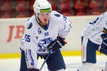 První třetina zápasu mezi Duklou a středočeským Kolínem nabídla velice rychlý a vyrovnaný hokej. Kolín se dostal do tempa již v první minutě, kdy byl vyloučen Illéš po nešťastném zákroku holí do obličeje Kukly. Následně inkasoval Strejček tvrdou ránu do kotníku a Jihlava byla rázem během první minuty na krátkou chvíli bez dvou hráčů. Domácí početní nevýhodu zvládli a Strejček se také ihned do řad Dukly vrátil. Tím začala pomalu Jihlava dostávat klid na kotouč a vytvořila si také několik příležitostí. Ty největší ale skončily na skvělém brankáři Sejpalovi, který chytil prakticky dvě branky Dukle. Nutno podotknout, že také Brož si připsal na druhé straně důležité zákroky. Stav po první třetině byl nerozhodný 0:0.