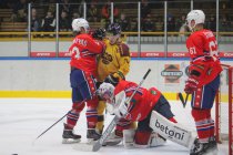 Úvod derby s Třebíčí se nesl v trochu rozevlátém dojmu s častým přesunem hry od jedné branky k druhé. Ovšem ani Adam Beran, ani Jan Mičán příliš práce mezi třemi tyčemi neměli. Větší tlak si sice utvářela domácí Dukla, přesto blíže k první brance zápasu měla Třebíč po Frömelově zakončení. Adam Beran se ale nakonec v brance zorientoval a puk polapil. I proto zůstal stav po první periodě nezměněný 0:0.
