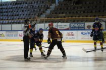 Oba týmy vstoupily do zápasu poměrně aktivně, drobnou herní převahu přesto měla v úvodu Dukla. Za svou aktivitu byla brzo odměněná, už ve 3. minutě se brankář Schacherl natahoval po první ráně Dukly, kterou sice dokázal vyrazit, ale puk nezachytil. Toho využil Matěj Vildomec, který se k vyraženému puku dostal jako první a lehkým nadzvednutím puku překonal ležícího gólmana. Dukla s průběhem třetiny zvyšovala aktivitu, dalšího gólu už se ale nedočkala.