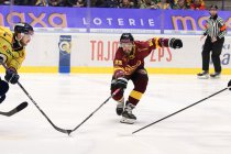 První třetina prvního finálového duelu Maxa ligy začala opatrným oťukáváním z obou stran. Oba týmy se soustředily hlavně na defenzivu, a tak diváci příliš šancí neviděli. Zlínské probrala až přesiovka zhruba v polovině první části. V té si domácí vypracovali úvodní větší šance a od té chvíle přebrali v utkání otěže. Byli to však hosté, kdo se ujal vedení. Ti šli do přečíslení 3 na 2, které vedl Marcel Štefančík. Na jeho snahu navázal Patriks Ozols, který poslal puk před branku Daniela Hufa. Puk se pak po odrazu od bruslí jednoho z bránících hráčů se štěstím dostal do sítě za zády brankáře domácích.