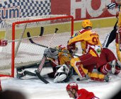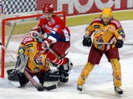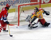 Při dalším pokusu se musel poprvé zaskvět strážce domácí svatyně. Pokus Pavla Vostřáka ztlumil svými betony. Následně se za ohlušujícího povzbuzování neprosadil Radek Dvořák, jemuž při kličce sklouzl kotouč z hole.