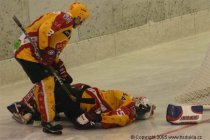 Dukla Jihlava dnes na svém ledě přivítala nováčka první ligy Jindřichův Hradec. První třetinu byli aktivnější hosté. V první minutě střílel na Kučeru po přihrávce Oldřicha Bakuse Daniel Hodek, ale jeho svižnou střelu brankář vyrazil. Hráči Jindřichova Hradce se dostali do rychlého protiútoku, který zakončoval na dvakrát Mrkvička, Jaroslav Suchan byl pozorný a svoji branku uhájil. O minutu později se hosté opět usadili v útočném pásmu a razantní střelou od modré čáry vyzkoušel pozornost jihlavského brankáře Kupec. Ve 4. minutě zakončoval akci hostů Škoda a i s jeho nepříjemnou ránou si Suchan věděl rady. Obrovskou šanci domácích neproměnili Jiří Dobrovolný a Vladimír Říha. Před branku nahazoval puk Dobrovolný a Říha se jemnou tečí snažil puk usměrnit do branky. Kučera se stihl správně a rychle přemístit a dorážku chytit. Nejblíže prvnímu gólu zápasu byl v páté minutě Ondřej Polák, když trefil konstrukci branky. V 8. minutě rozhodčí Minář vyloučil po jednom hráči na obou stranách a hrálo se tedy čtyři na čtyři. Hned po vhazování tvrdě vypálil Robert Pospíšil a Kučera střelu vytěsnil nad plexisklo. Dvanáctá minuta přinesla velkou šanci hostů, když střela Škody mířila těsně vedle Suchanovy branky. Ve 14. minutě byl vyloučen hráč Dukly Hlouch na dvě minuty za sekání. Od modré čáry střílel útočník hostů Škoda a Suchan nejistým zákrokem puk vyrazil před sebe, ale u puku byl rychleji jihlavský obránce a puk vyhodil. Čtveřice hráčů Dukly se obětavými zákroky ubránila. Po skončení přesilovky tvrdě na Suchana vystřelil Klimeš, jihlavský brankář puk vyrazil do ochranné sítě. Tři minuty před koncem třetiny připravil střeleckou pozici Janu Šmardovi Daniel Hodek. Šmardova střela byla před brankou tečována nad plexisklo. O minutu později předvedli perfektní souhru Hodek s Rytnauerem, ale zakončení Ladislava Rytnauera Kučera chytil. V poslední minutě první třetiny připravoval Oto Lazorišák střeleckou pozici pro Ondřeje Poláka, ale ten se před brankou hostů k puku nedostal.