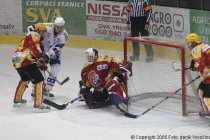 V prvních minutách utkání měli kotouč na holích spíše hráči Horácké Slávie. Již v třetí minutě byl vyloučen na dvě minuty hráč Dukly Lupač za podražení. Třebíč na nic nečekala a již po minutě vstřelil Jiří Hanzal po nádherné přihrávce Reháka zpoza branky gól do Suchanovy svatyně. Třebíč vedla 1:0. Tlak domácích neustal a Suchan chytá další velikou šanci. V osmé minutě však Dukla vyrovnala. Po nahrávce Fiedlera vstřelil branku Ota Lazorišák. Třebíčští se však nevzdali. Lašův pokus o zvýšení skóre se nezdařil. Střela míjí o milimetry branku Dukly. Ve čtrnácté minutě byla Jihlava potrestána za příliš mnoho hráčů na ledě. Dvě minuty si šel odpykat Rytnauer. Třebíčští však nabídnutou šanci nevyužili. Dvě minuty před koncem první třetiny jel Lazorišák sám na Filipa Luňáka. Ten však jeho nájezd vyrazil. První třetina tak skončila 1:1.Do druhé třetiny nastupují oba týmy s novou energií. Hraje se rychlý hokej. Fanoušci povzbuzují oba týmy. Krásnou šanci měl Laš, ale Suchan byl připravený. Třebíč se zdá lepším týmem. Další šanci však spálil aktivně hrající Látal. Další minuty je na ledě vidět spíše průměrný hokej a boj o každou píď ledu. Hráči Dukly začali být aktivnější, přebruslují domácí hráče povzbuzováni svými fanoušky. Třebíč je pod tlakem. Góly však díky krásným zákrokům Luňáka nepadají. Fiedler si jde odpočinout na trestnou lavici za hákování. Třebíč hraje již třetí přesilovku. Dukla se však přesilovce ubránila, nebyla úspěšná ani Sobotkova střela.