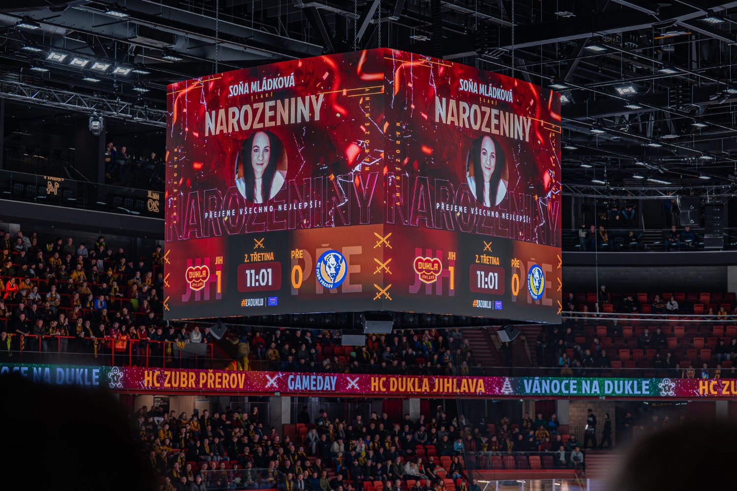 Nabízíme možnost speciální narozeninové grafiky na multimediální kostce a osobního přání od moderátora během přestávky.